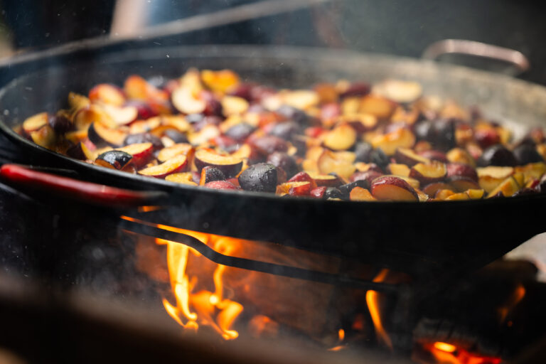 Our Michelin-starred chefs and MasterChef winners cook over open fire in full view. There’s smoke, storytelling, sound. Guests watch ingredients transform.